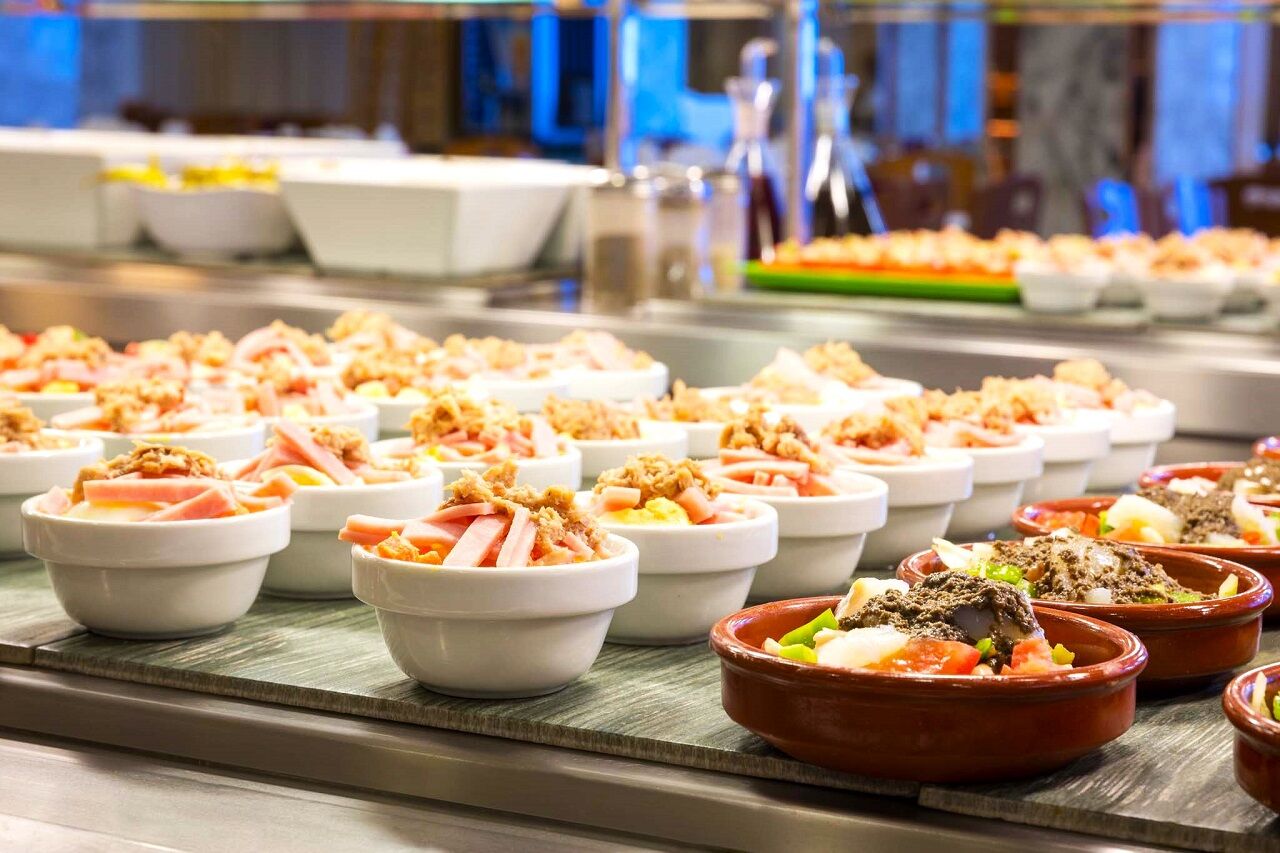 FB – śniadanie (do picia - kawa, herbata, sok, woda), obiad i kolacja (do picia - woda). Posiłki podawane w formie bufetu – kuchnia hiszpańska.